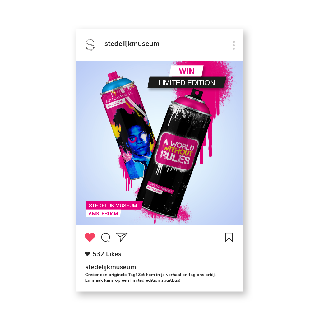 The Stedelijk Museum kicked off a new gallery show all about street art, leading to the creation of a marketing concept to connect with the audience. This approach featured abri posters, social media campaigns, and unique merchandise